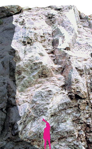 | Vert vor und nach dem Aufspannen. Verankert ist die filigrane Raumstruktur oben und unten, die Spannstäbe stemmen sich lediglich gegen den Fels. |